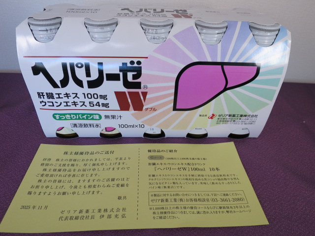 【株主優待】ゼリア新薬工業(4559)の優待到着! ヘパリーゼW10本! 公開日:2025年11月30日 株主優待9月 ゼリア新薬工業(4559)の株主優待が到着しました。 100株でヘパリーゼ10本になります。3年以上保有で「プレミアム極」にパワーアップです。 優待到着は11月29日頃でした。配達はゆうパックでした。 ⇒ゼリア新薬工業( […] 続きを読む