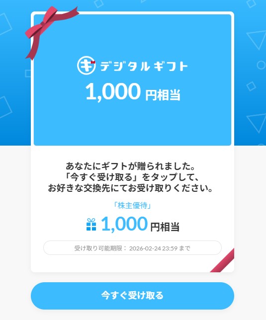 【株主優待】カーブスホールディングス(7085)の優待到着!紫カラーのオリジナルQUOカード! 公開日:2025年11月29日 株主優待8月 カーブスホールディングス(7085)の株主優待が到着しました。 100株で500円分オリジナルクオカードです。 優待到着は11月27日頃でした。配達は普通郵便でした。 ⇒カーブスホールディングス(7085)の株主優待関連 […] 続きを読む