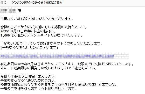デジタルギフトの優待にしておけば企業的にも負担は少ないですので悪くないですね。出資側からするとECFでは株主優待は企業のプロモーションになるもの以外ですと、費用負担になって欲しくないという思いですが、年に1度ぐらい挨拶代わりに届くのは嬉しいです。