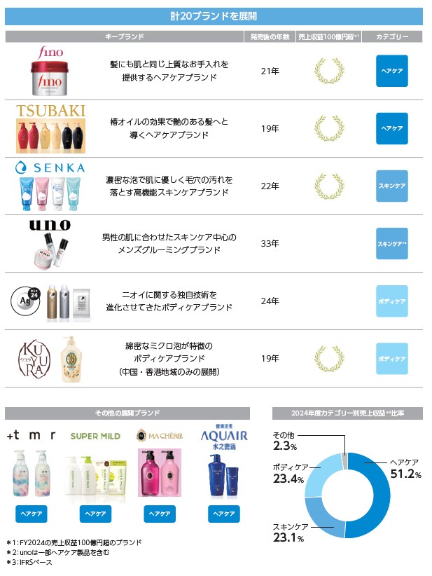 まずは何と言っても保有ブランド。発売後20~30年近く経っていても良く売れている商品群を保有しています。逆に言えば古いブランド感もありますが、ファッション性の高いパーソナルケア商品で、ここまで定番商品を出し続けるブランド力は強いと言えそうです。ただ、国内では新しいブランドに押されているので、海外向けに日本の資生堂ブランドを提供してきて、まだ続いているという感触が強いでしょうか?