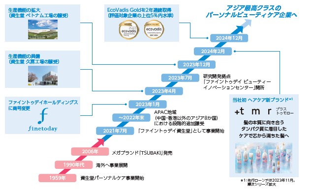 沿革も掲載されています。これは前回上場予定時にも同じようなものを見た記憶があります。ヘアケア新ブランドということで「+tmr」というものを出しているようですが、正直、あまり根付いていないような?気がしますね。やはり「旧資生堂」からのイメージ脱却は難しいと思うので、まだ認めてもらえそうなアジア諸国での売り込みが重要そうです。
