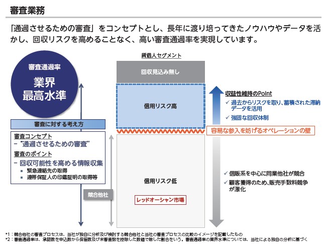 ビジネスモデルの強みとしては「業界最高水準の審査通過率」が挙げられています。それゆえ、不動産会社もビジネスが進めやすく日本セーフティーを使っておきたいとなるのでしょう。信用リスクが低い場合は、本当はこんな家賃保証会社要らないのですが、不動産会社がビジネスがやりやすいというに家賃保証会社が必須レベルになっている世の中、日本セーフティーは「信用リスク高から低まで」、全体から収益を取れるのは強みですね。