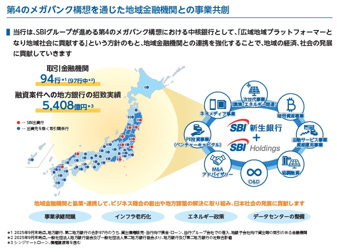 成長戦略に第4のメガバンク構想も書かれていました。地銀機能も取り込んでメガバンクに向かっていきます。地銀それぞれだとサービスが弱いけど、SBIの力があることで強みを見せそうです。敵は現存の3大メガバンクで、弱り目となっている地方銀行などを取り込んでWin-Winで拡大していきそうです。