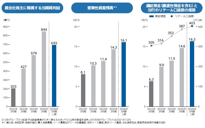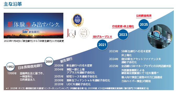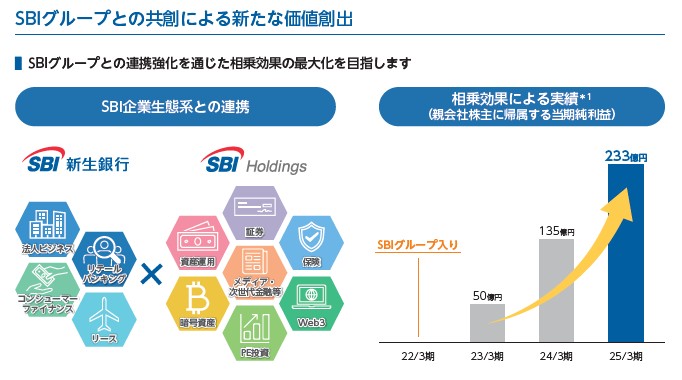 まずは沿革を追っておきたいところです。1952年に日本長期信用銀行として設立、2000年に新生銀行に、2021年にSBIグループ入りしており、2023年にSBI新生銀行として名称変更して現在に至ります。SBIグループの銀行としては2023年にネット専業銀行として住信SBIネット銀行が上場しました。上場後にぐんぐんと株価を伸ばして非上場化しています。どちらかというとSBIがドコモも銀行欲しいということでドコモに渡した感があり、SBIは今後はこちらに注力していくでしょう。
