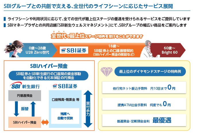 共創で何が良いのか少し紹介されています。全世代での特典が紹介されています。今後はSBI新生銀行がSBI証券とのシナジーが強くなりそうで、そこにステージ特典が付いてくるので預金残高をSBI新生銀行に移して残高が増える施策が増えそうです。逆に住信SBIネット銀行はNEOバンクという名称になっていますが、ドコモになってどうなっていくのかですね。あちらはdポイントとかドコモ携帯、dカードなどの決済システムとの連携になりそうです。NTTの動きの遅さだとSBIには現状は勝てない気もします。