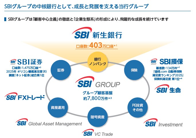 SBI経済圏の中核銀行として紹介されています。金融グループとして多くのシナジーが期待できそうです。保険や証券、FXや暗号資産と言った分野にもつながりがあり、多くの顧客の金融資産を支配できるレベルですね。