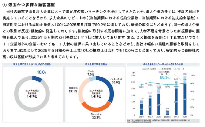 最後に顧客基盤です。IT人材の確保は多くの企業の課題となっており、より専門的な部隊がちゃんと機能しないと苦戦している所も多いでしょう。ギークな人は企業人としてうまく勤めるのは苦手な人は多そうですが、専門的な分野を任せたら、凄い能力を発揮して仕事を行うことが出来ます。そういった部分のマッチングを取っていそうです。