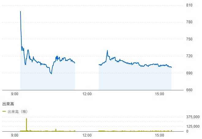 初値:809円 (公募比: -71円/-8.1%)