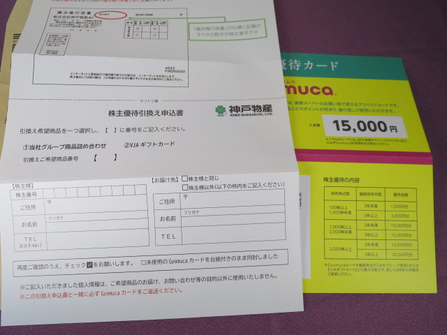 なお、神戸物産の株主優待はいずれギフトカードの交換はなくなりそうな雰囲気はありますね。もともとは紙の優待券が発行されていたけど偽造問題でギフトカードをくれていたところもあるので、ギョムカが馴染んでくるとギフトカード交換は止めるかもしれません。