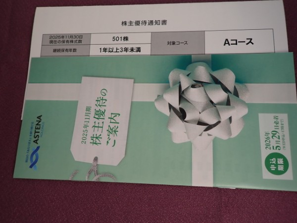 アステナホールディングス(8095)の株主優待案内が到着しました。