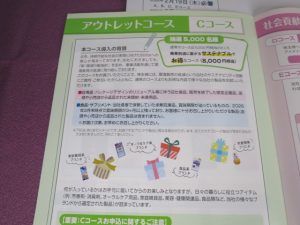 今回もアウトレットコースがあります。普通なら5,000円相当だけどアウトレットで良いなら8,000円相当で、商品がよりたくさん入っています。