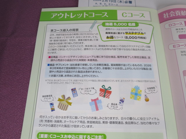 Aコースにするか?Cコースにするかですが、前回アウトレットコースを頂きましたがAコースに似た商品がより沢山の量で入っています。ただし、健康食品系も多いことから小林製薬の健康食品やサプリメントは怖いという方は無理にアウトレットではなくAコースでも良いかもしれません。