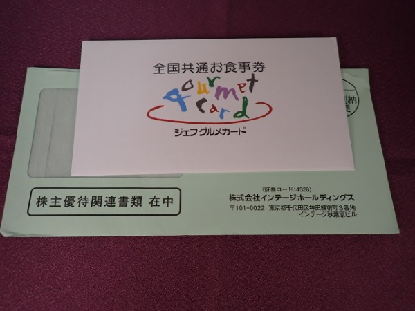 インテージホールディングス(4326)の株主優待案内が到着しました。