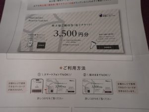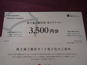 100株以上、半年以上の保有で3,500円分の優待チケットが届きます。