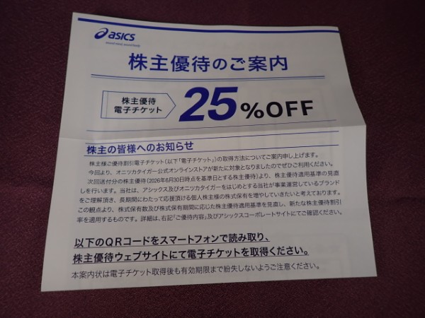 アシックス(7936)の株主優待が到着しました。