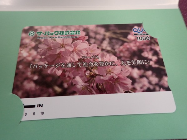 コーポレートカラーは緑で、自然豊かな柄のQUOカードが特徴ですが今回は桜の花の色でした。ちょうど桜が咲き誇るシーズンに届きますので、券面を見るだけでも気持ちが良いですね。癒やされます。
