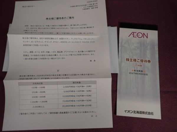 イオン北海道(7512)の株主優待が到着しました。