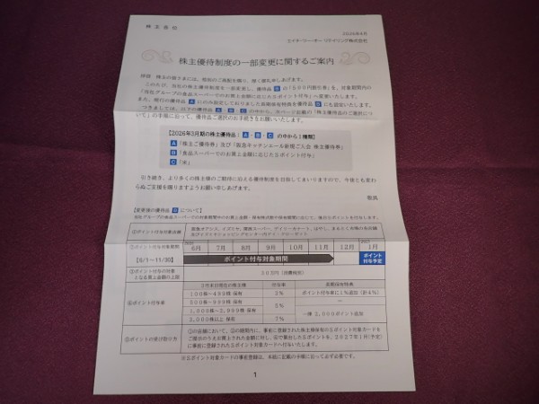 優待案内到着は4月24日頃でした。配達は普通郵便でした。