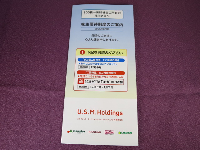ユナイテッド・スーパーマーケット・ホールディングス(3222)の株主優待案内が到着しました。
