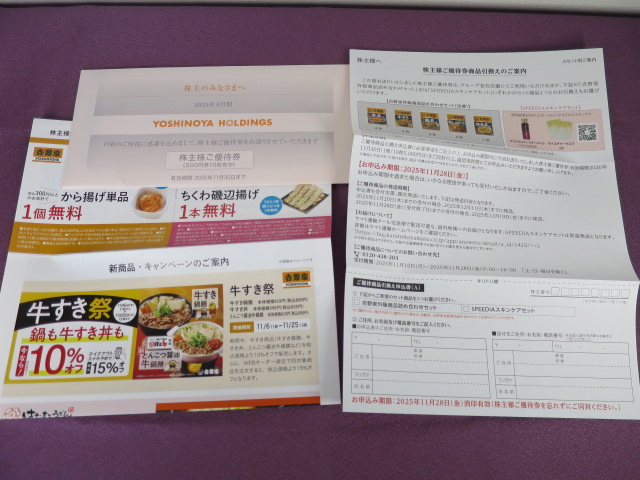 吉野家ホールディングス(9861)の株主優待が到着しました。