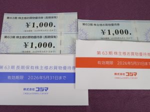 100株以上で1,000円券1枚、2年以上の継続保有分が2枚追加です。