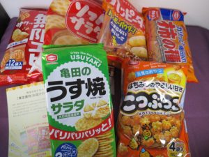 1,000円相当でも6商品が入っていて嬉しいですね。お菓子の中でもおかきやせんべい類は好きなので、この優待はかなり家族も喜んでいます。賞味期限も半年程度持ちそうですが、すぐに消化されるでしょう。