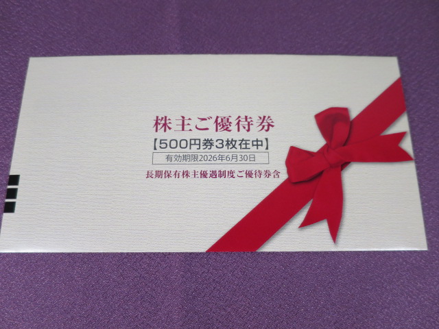 100株以上で1,000円分の優待券です。3年以上保有で500券1枚追加になります。