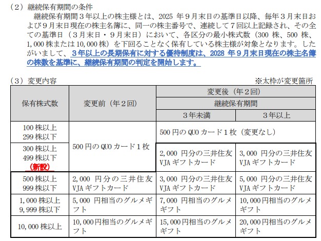 優待に関しては300株以上でVISAギフトカードです。3年以上なら3,000円分になりますが、それほど大差はないですね。今後も100株でクオカード500円か、300株でビザギフト2,000円なら、とりあえず300株で取れるなら貰おうという銘柄になりそうです。
