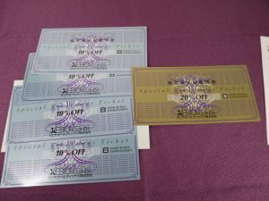100株以上で20%割引券1枚、10%割引券4枚です。